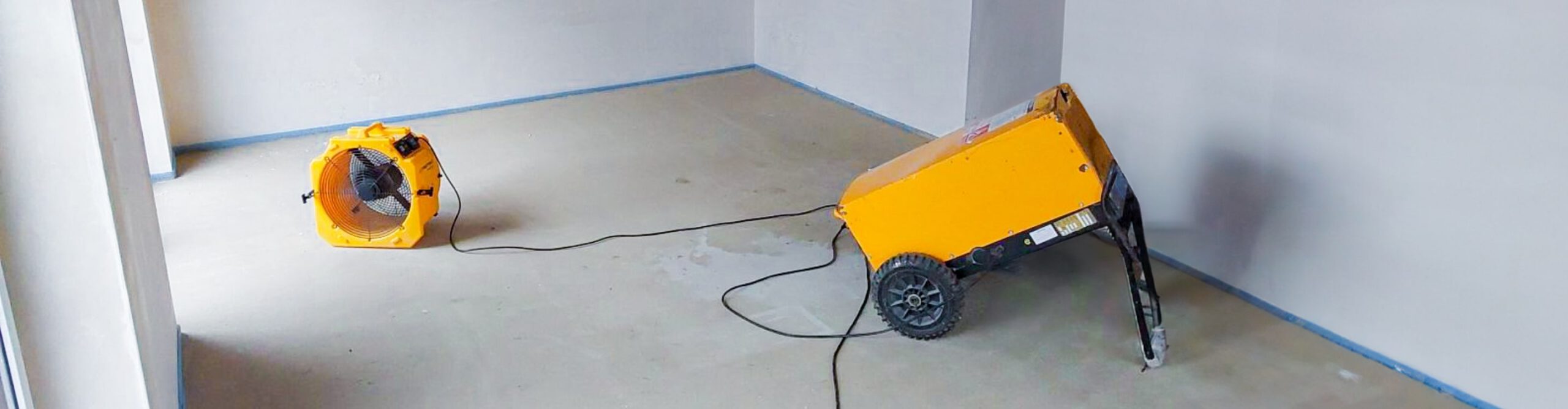 Ist erst einmal eine größere Menge Wasser über eine Schadenstelle ausgetreten und die Dämmschicht unter dem Estrich oder der Wandputz durchnässt, ist eine technische Trocknung fast unumgänglich. Das gesammelte Wasser würde Jahre brauchen um auszutrocknen. Bakterien und Schimmelpilze finden hier guten Nährboden und wachsen enorm schnell.